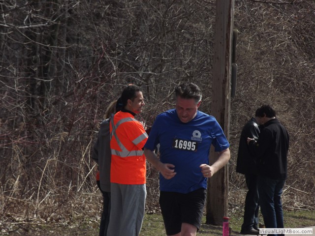 This race was going to offer me the opportunity to be on the other side of the registration table, since it’s put on by my club the Cambridge Harriers and I agreed to volunteer with set up and bag check.We were to gather at Highland Public School by the start line at the ungodly hour of 7AM (note: I am not a morning runner or, for that matter, a morning person) and the day didn’t start particularly well when I went out to my car to find the right rear tire nearly flat at 6:30. Fortunately my kids were in bed and didn’t hear the inventive string of cuss words I snarled as I got the jack out and put my spare on. At 6:30 in the morning. Did I mention it was raining? Yeah. It was raining too. Whatever. Up yours, universe.